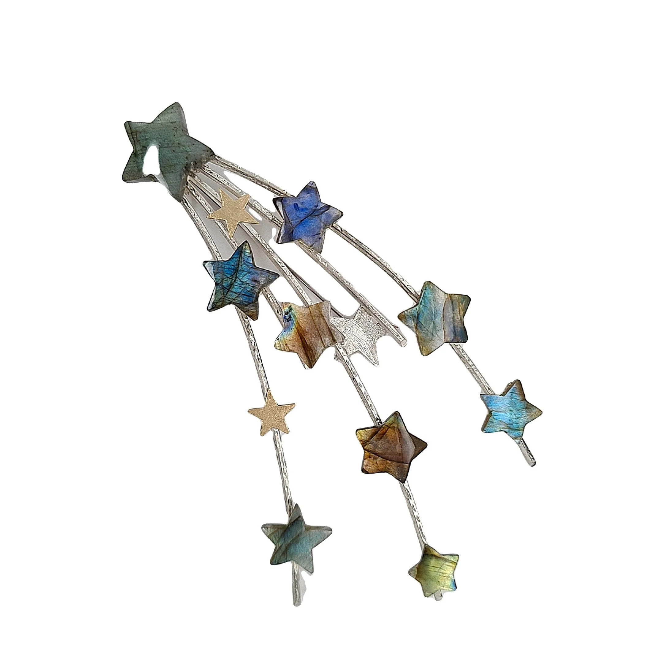 rose chalcedony druzy in silver and gold with black diamonds and garnets.